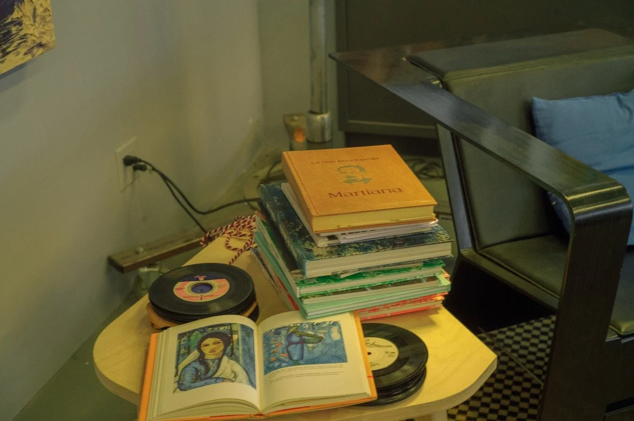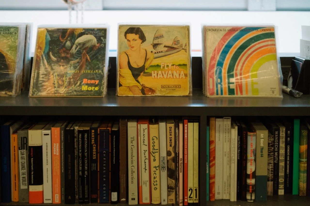 Vinyl and book collection at the studio
